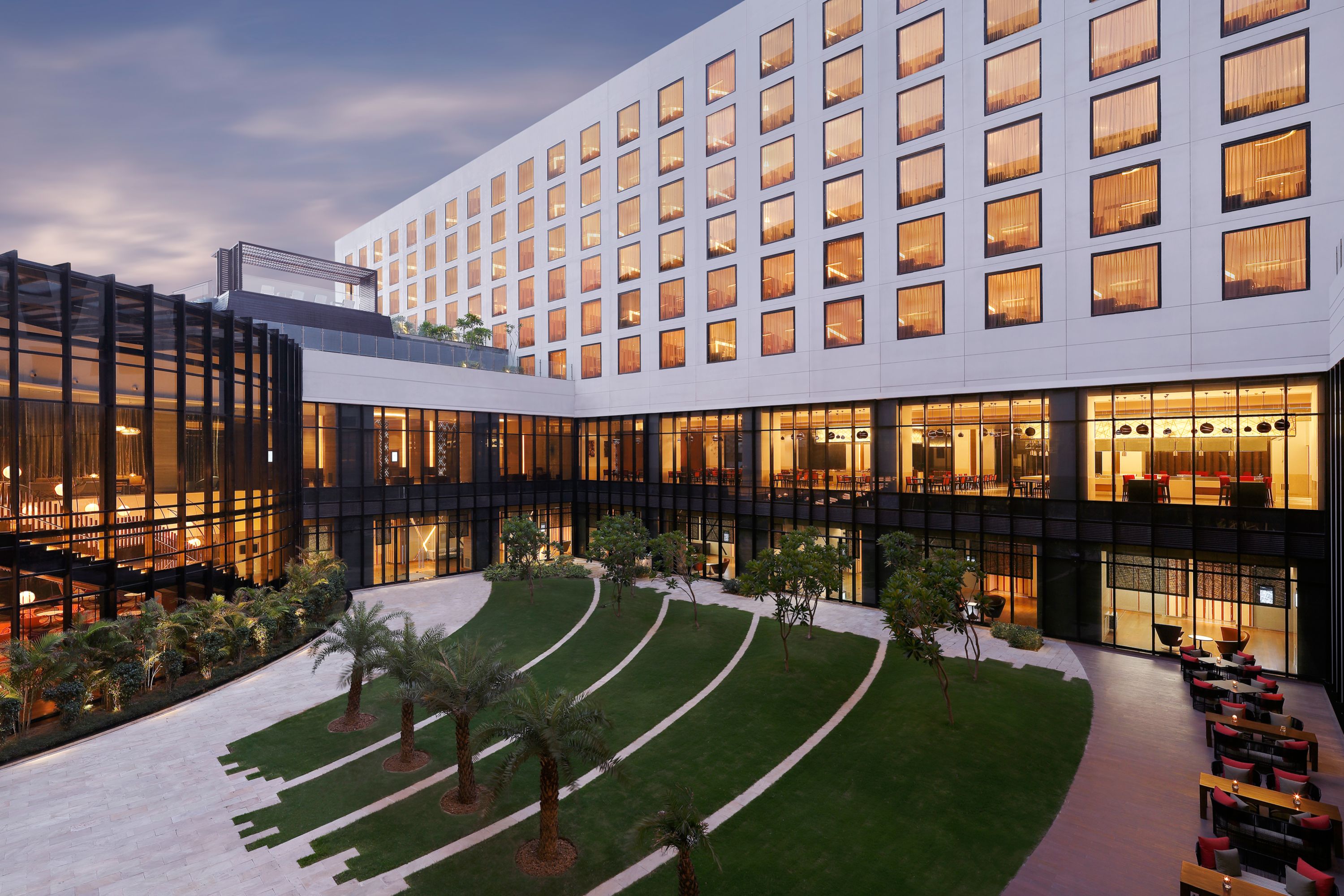 El Novotel New Delhi Aerocity es amplio y tiene un diseño moderno. Con 400 habitaciones, es el alojamiento ideal para atender todas sus necesidades. El hotel ofrece servicios para huéspedes de negocios y ocio: varias opciones de restauración, spa de lujo y gimnasio 24/7. Está junto a las terminales nacionales e internacionales del aeropuerto, con conexión a través de la línea Airport Express, a solo 5 min. Está cerca de los centros de negocios de Delhi NCR, donde encontrará empresas de Fortune 500.